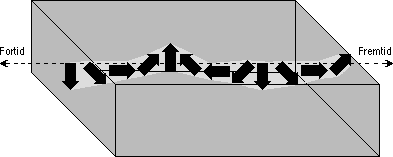 ...'man kan forestille sig tiden som en linie (teoretisk af uendelig længde) på hvilken et bevægeligt punkt er det nuværende øjeblik;. Alt foran det nuværende øjeblik er i fremtiden og alt bag det er i fortiden.'