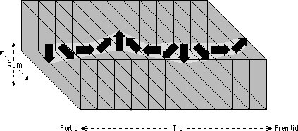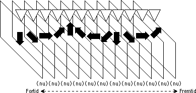 FIGUR 2. En genstand i bevægelse som en rækkefølge af 'fotografier', der bliver til nutiden et efter et.